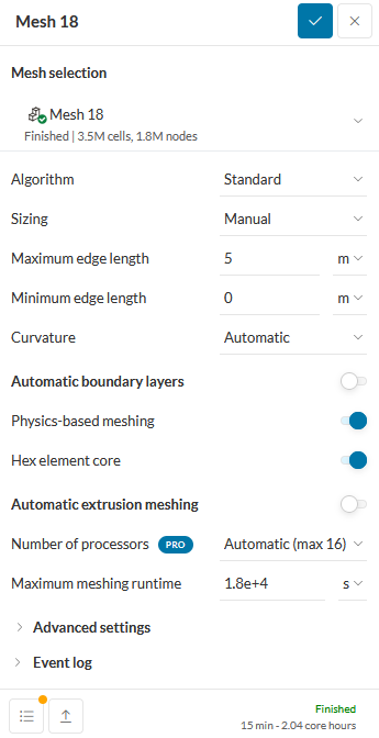overall 3D model volume mesh size of say 0.5m or smaller.