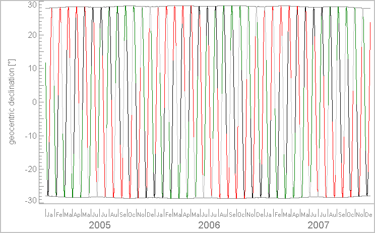 the behavior of extreme geocentric declination. The analysis of