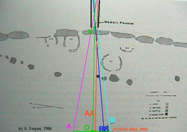 entrance (X) and point O towards 'Fennor' (or any other place). By means