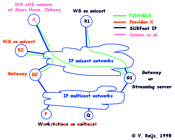 | Application stack | QuickTime | 'Mbone' tools | web camera | Microsoft Media Player | RealNetworks | FVC.COM | UCL/UTG |